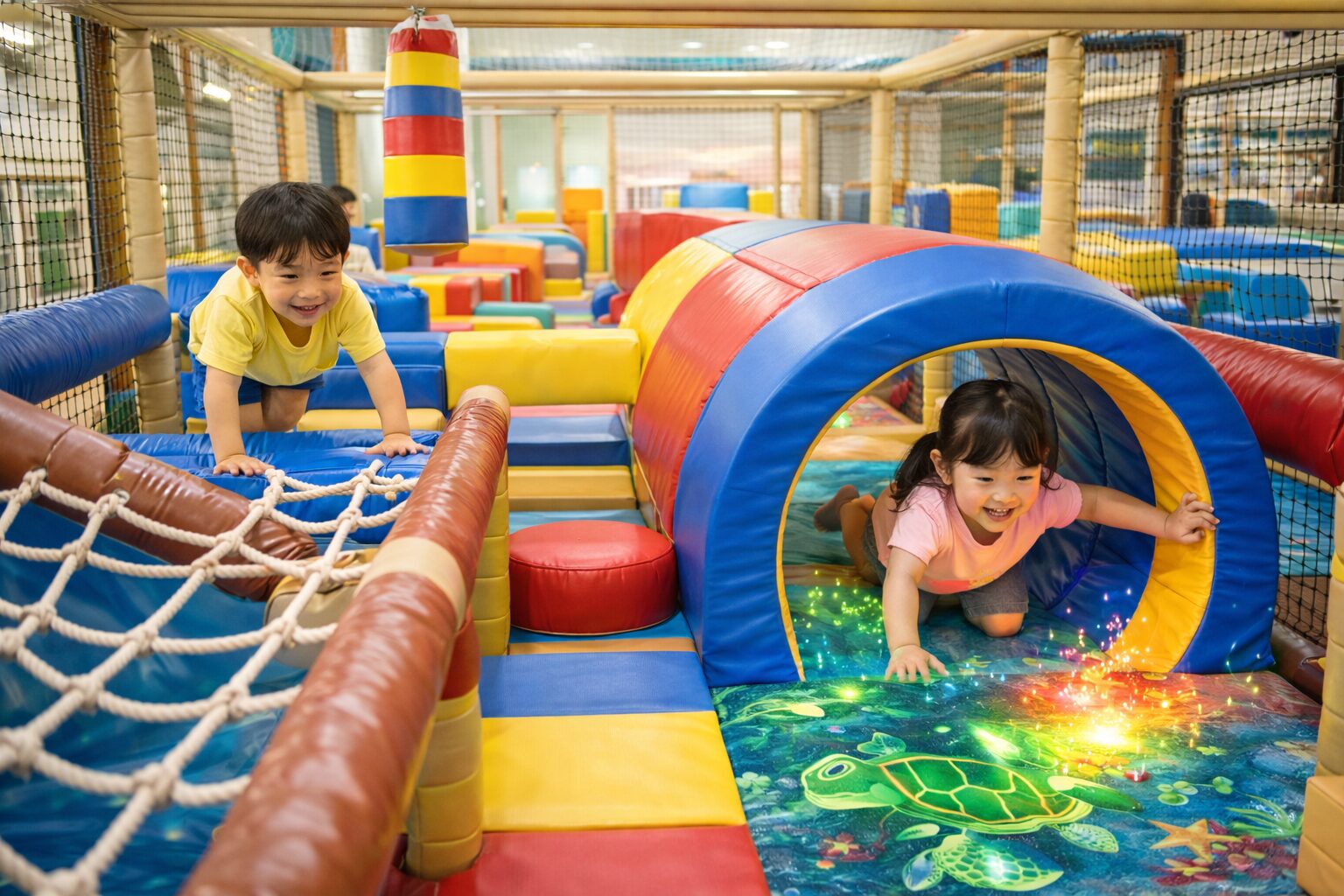 壁や床に広がる光の演出が、冒険気分をぐっと高めます。